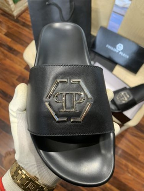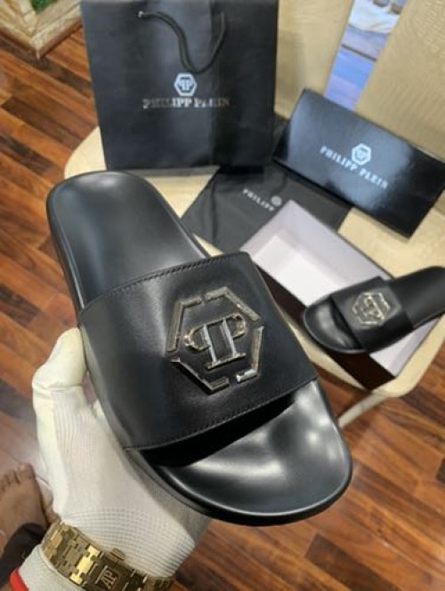 • PHILIPP PLEIN LOGO LEATHER PREMIUM SLIDE os